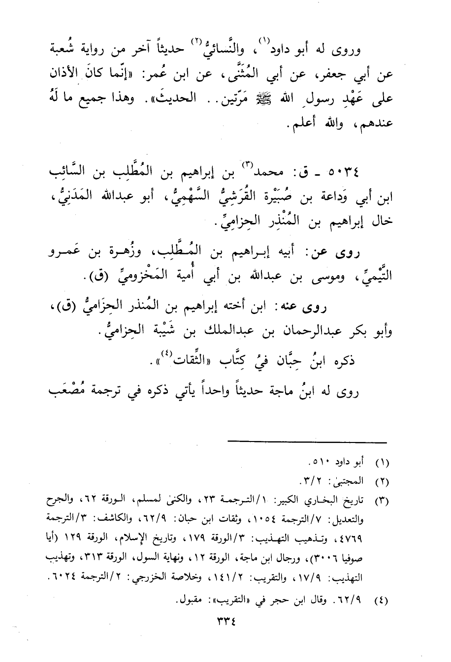 5034 - ق: مُحَمَّد بْن إِبْرَاهِيم بْن المطلب بن السائب ابن أَبي وداعة بن صبيرة القرشي السهمي (3) ، أَبُو عَبْد اللَّهِ المدني، خال إِبْرَاهِيم بْن المنذر الحزامي.