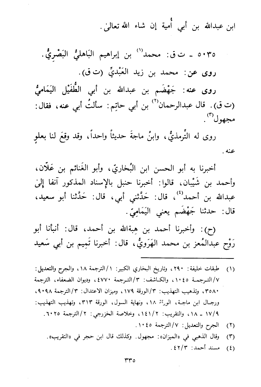 5035 - ت ق: مُحَمَّد بن إِبْرَاهِيم الباهلي البَصْرِيّ (1) .
