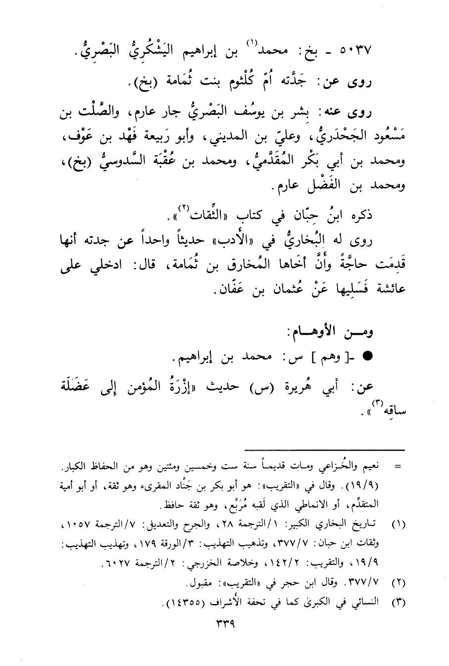 5037 - بخ: مُحَمَّد بن إِبْرَاهِيم اليشكري البَصْرِيّ (1) .