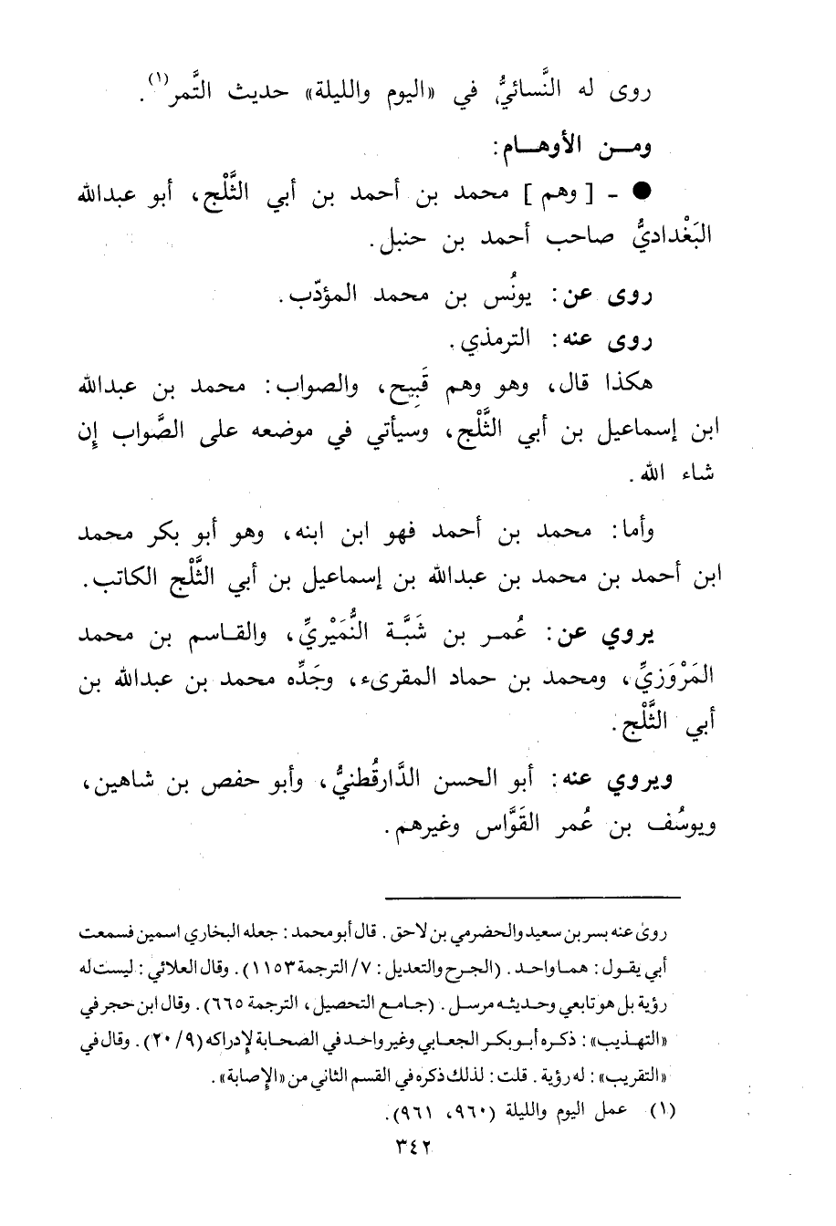 - وَهْمٌ مُحَمَّد بن أَحْمَد بن أَبي الثلج، أَبُو عَبْد اللَّهِ البغدادي صاحب أَحْمَد بْن حَنْبَل.