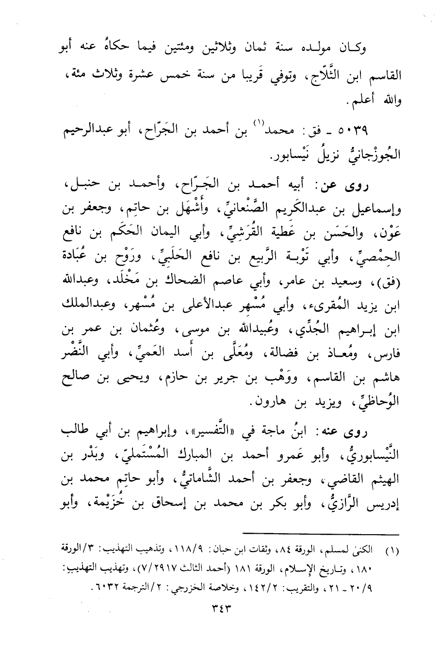 5039 - فق: مُحَمَّد بن أَحْمَد بن الجراح (1) ، أَبُو عَبْد الرَّحِيمِ الجوزجاني نزيل نيسابور.
