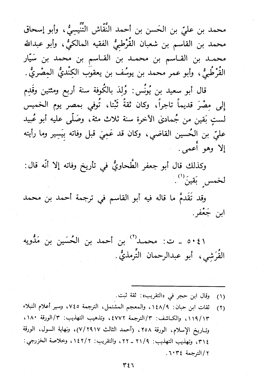 (2) ثقات ابن حبان: 9 / 148، والمعجم المشتمل، الترجمة 745، وسير أعلام النبلاء 13 / 119، والكاشف: 3 / الترجمة 4772، وتذهيب التهذيب: 3 / الورقة 180، وتاريخ الاسلام، الورقة 258، (أحمد الثالث 2917 / 7) ، ونهاية السول، الورقة 314، وتهذيب التهذيب: 9 / 21 - 22، والتقريب: 2 / 142، وخلاصة الخزرجي: 2 / الترجمة 6034.