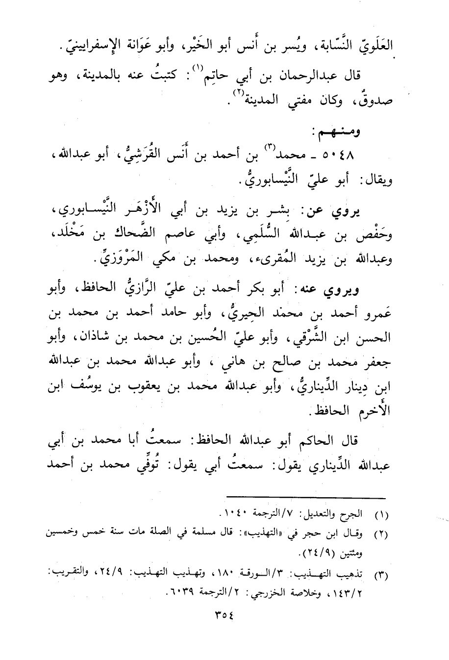 5048 - مُحَمَّد بن أَحْمَد بن أنس القرشي (3) ، أَبُو عَبْد اللَّه، ويُقال: أَبُو علي النَّيْسَابُورِيّ.