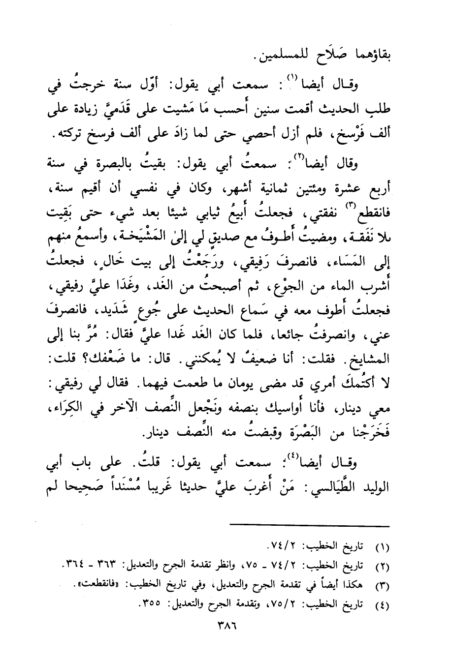(4) تاريخ الخطيب: 2 / 75، وتقدمة الجرح والتعديل: 355.