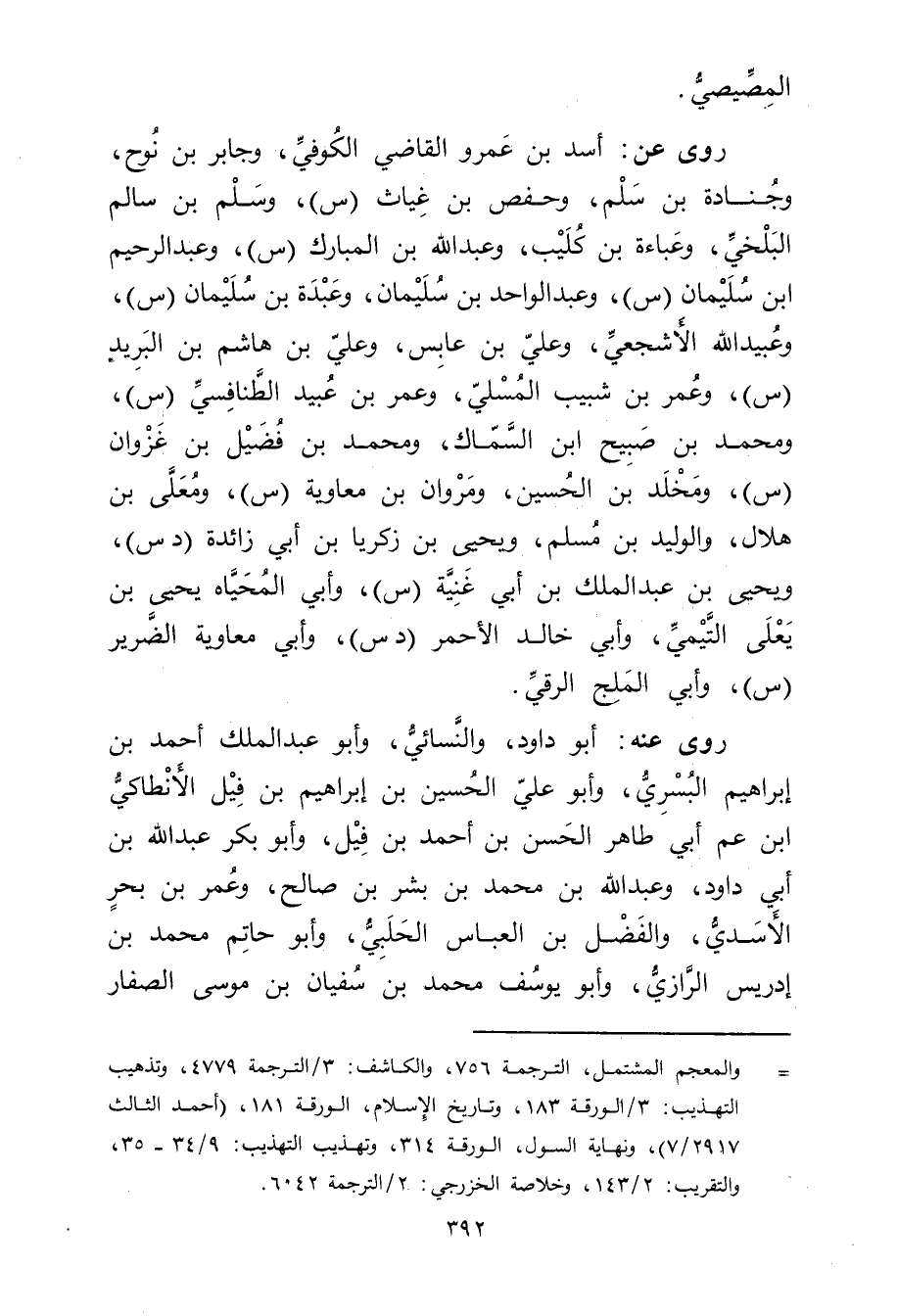 = والمعجم المشتمل، الترجمة 756، والكاشف: 3 / الترجمة 4779، وتذهيب التهذيب: 3 / الورقة 183، وتاريخ الاسلام، الورقة 181، (أحمد الثالث 2917 / 7) ، ونهاية السول، الورقة 314، وتهذيب التهذيب: 9 / 34 - 35، والتقريب: 2 / 143، وخلاصة الخزرجي: 2 / الترجمة 6042.