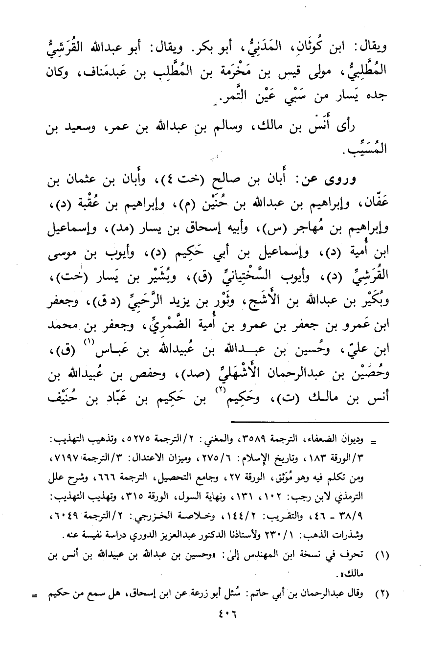 (1) تحرف في نسخة ابن المهندس إلى: "وحسين بْن عَبد الله بْن عُبَيد الله بْن أنس بْن مالك.