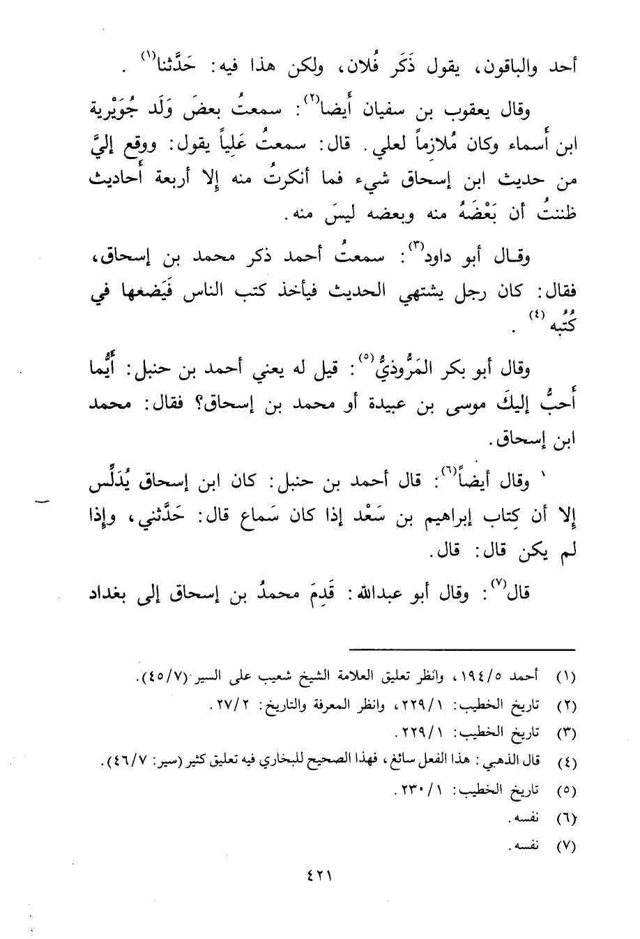 قال (7) : وَقَال أَبُو عَبْد اللَّهِ: قدم مُحَمَّد بْن إسحاق إلى بغداد