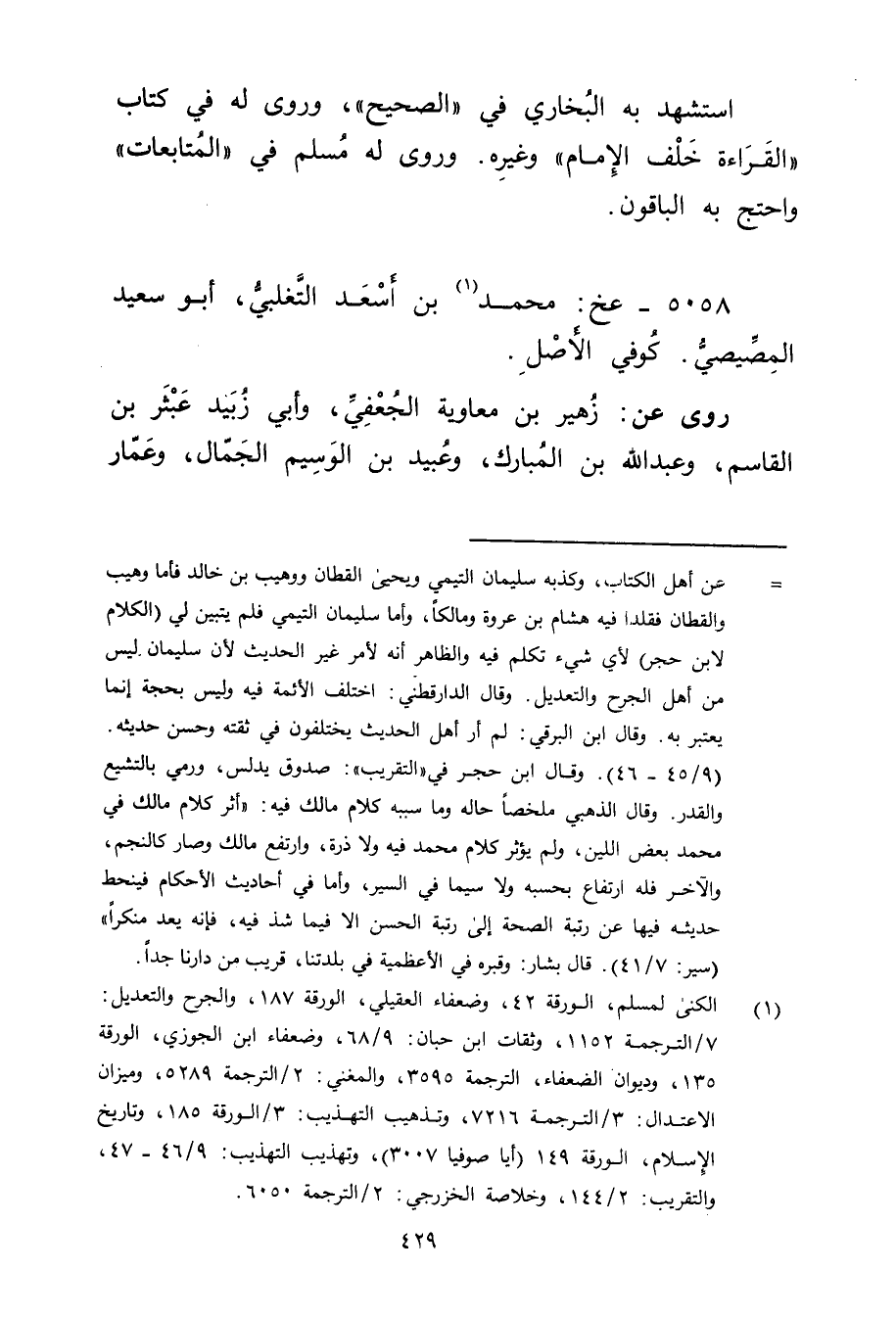 5058 - عخ: مُحَمَّد بن أسعد التغلبي (1) ، أَبُو سَعِيد المصيصي. كوفي الأصل.