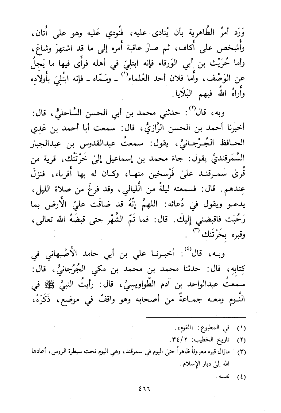 (3) ما زال قبره معروفا ظاهرا حتى اليوم في سمرقند، وهي اليوم تحت سيطرة الروس، أعادها الله إلى ديار الاسلام.