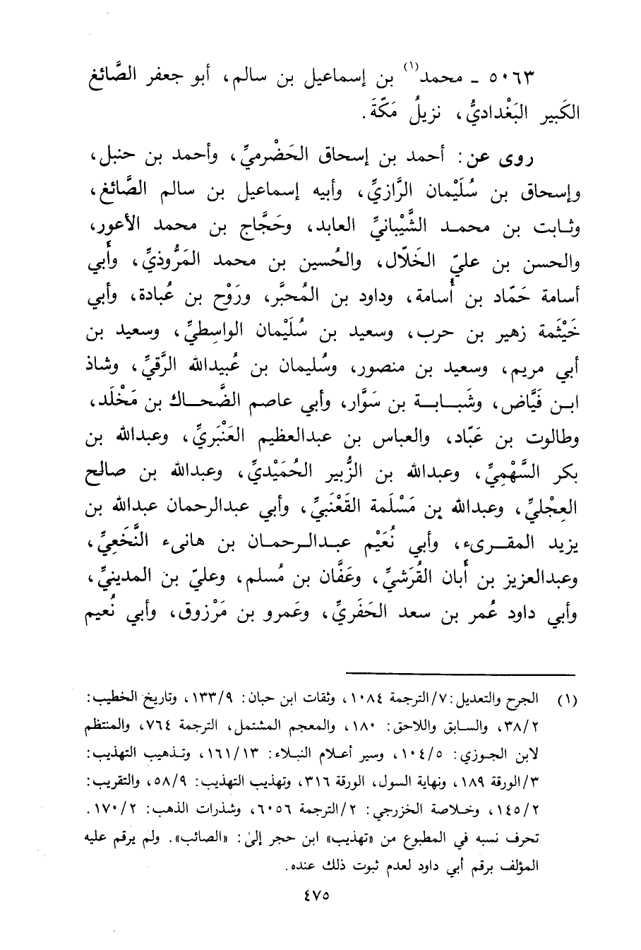 5063 - مُحَمَّد بْن إِسْمَاعِيل بْن سالم (1) ، أَبُو جَعْفَر الصَّائِغ الكبير البغدادي، نزيل مكة.