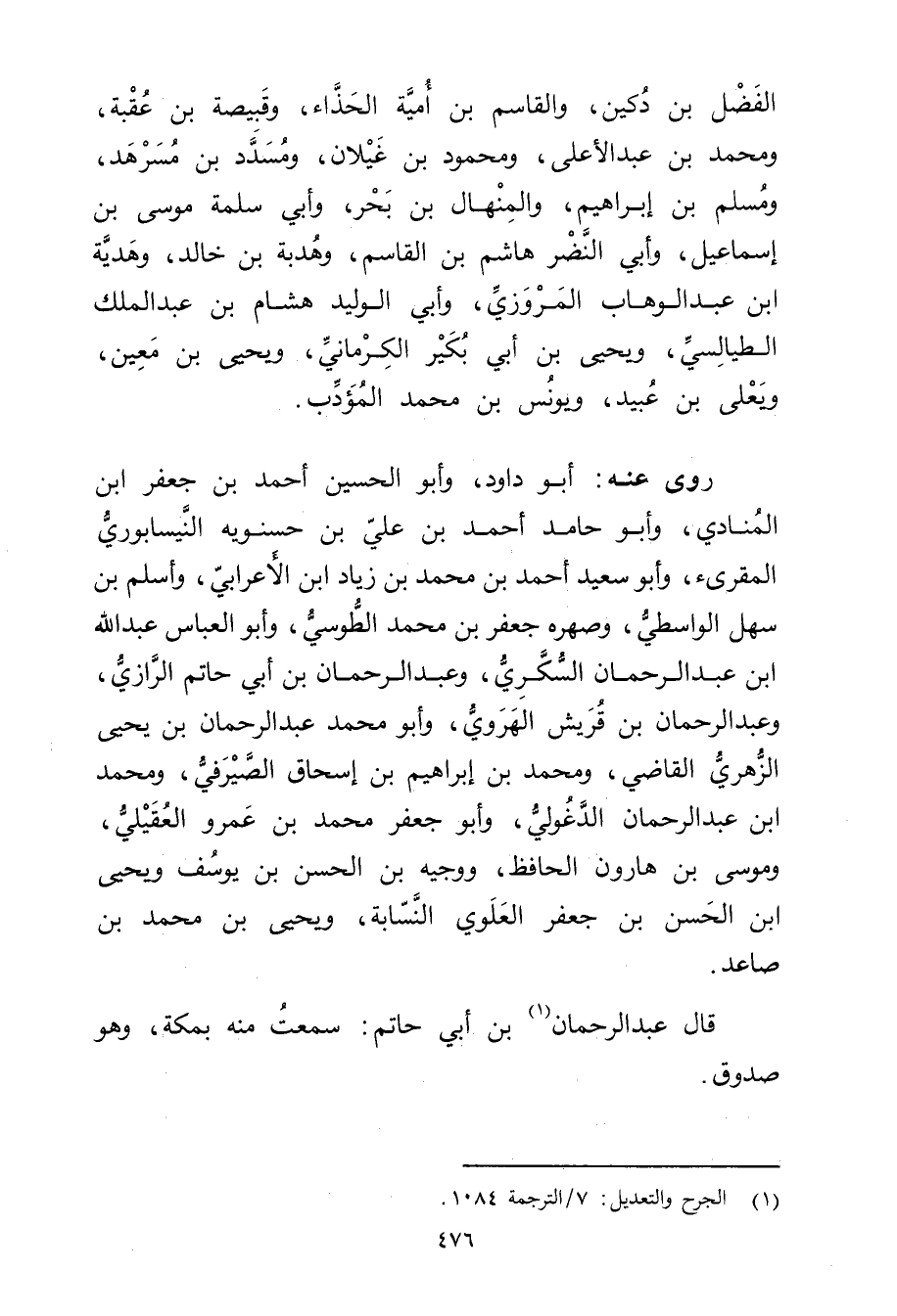 (1) الجرح والتعديل: 7 / الترجمة 1084.