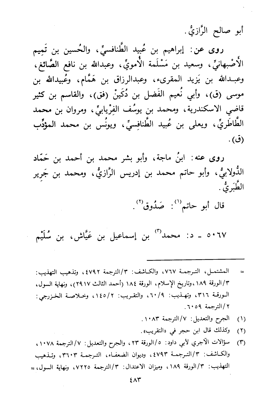 5067 - د: مُحَمَّد بن إِسْمَاعِيل بن عياش (3) ، بن سليم