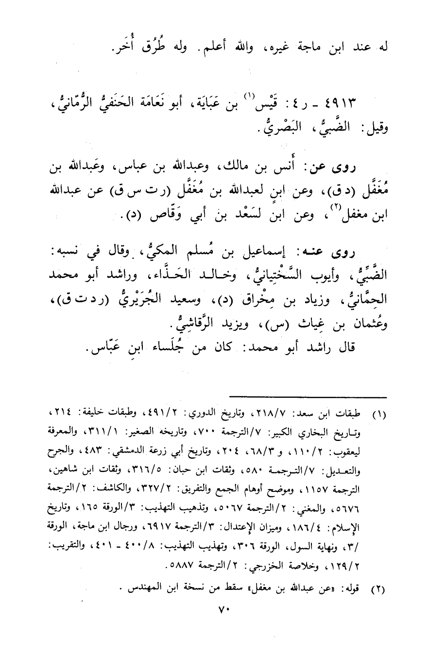 4913 - ر 4: قَيْس بن عباية (1) ، أَبُو نعامة الحنفي الرماني، وقيل: الضبي، البَصْرِيّ.