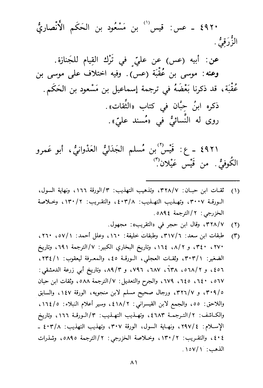 4921 - ع: قَيْس بن مُسْلِم الجدلي العدواني (2) ، أَبُو عَمْرو الكوفي. من قيس عيلان (3) .