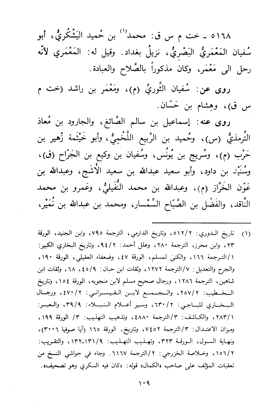 5168 - خت م س ق: مُحَمَّد بن حميد اليشكري (1) ، أبو سفيان المعمري البَصْرِيّ، نزيل بغداد.