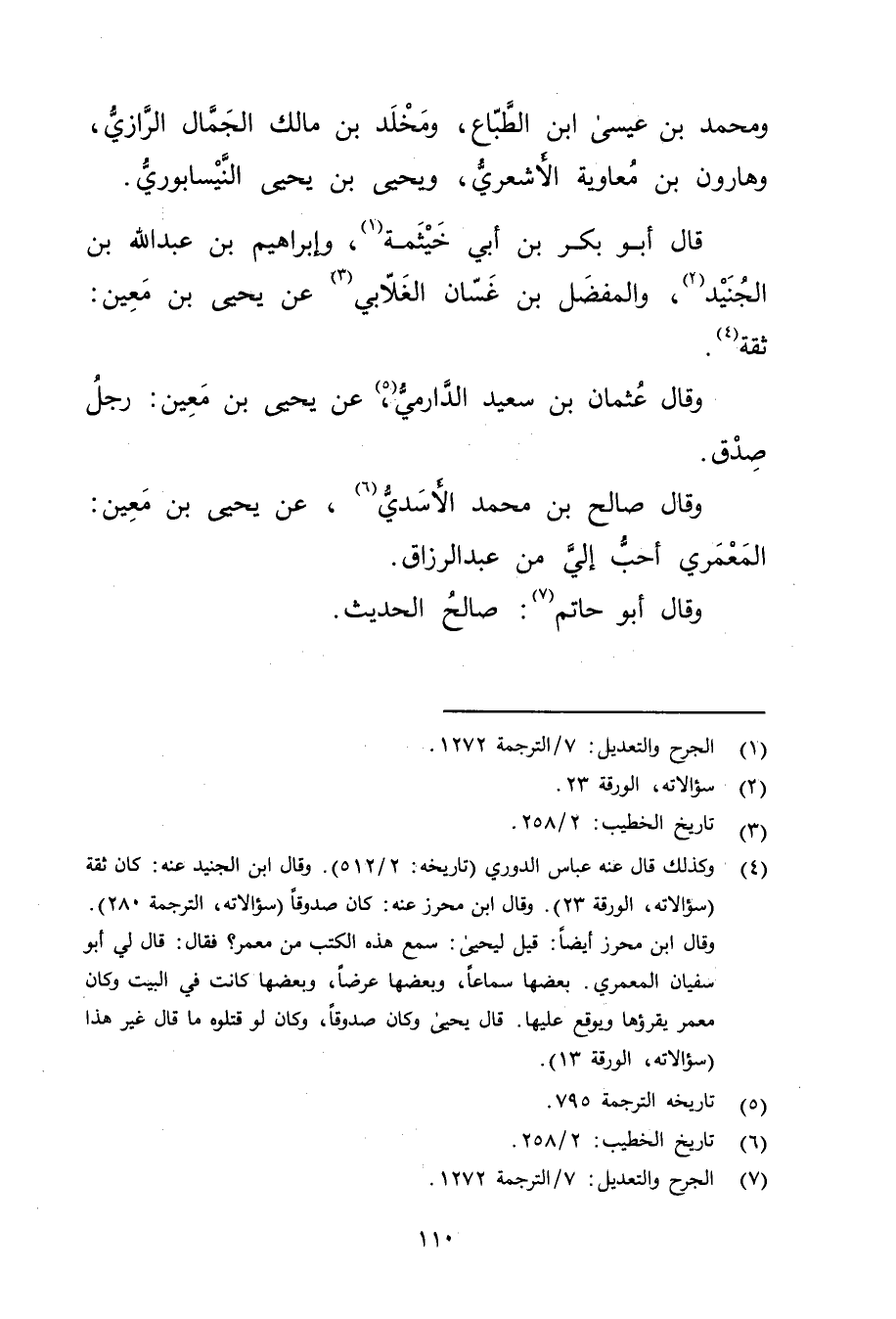 (1) الجرح والتعديل: 7 / الترجمة 1272.