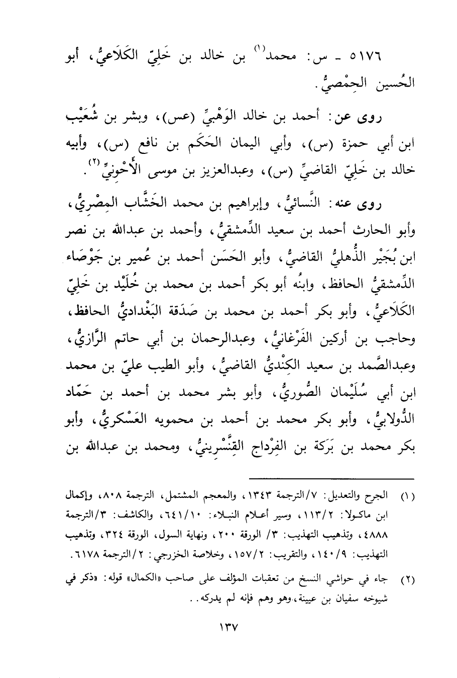 5176 - س: مُحَمَّد بن خالد بن خلي الكلاعي (1) ، أبو الحسين الحمصي.