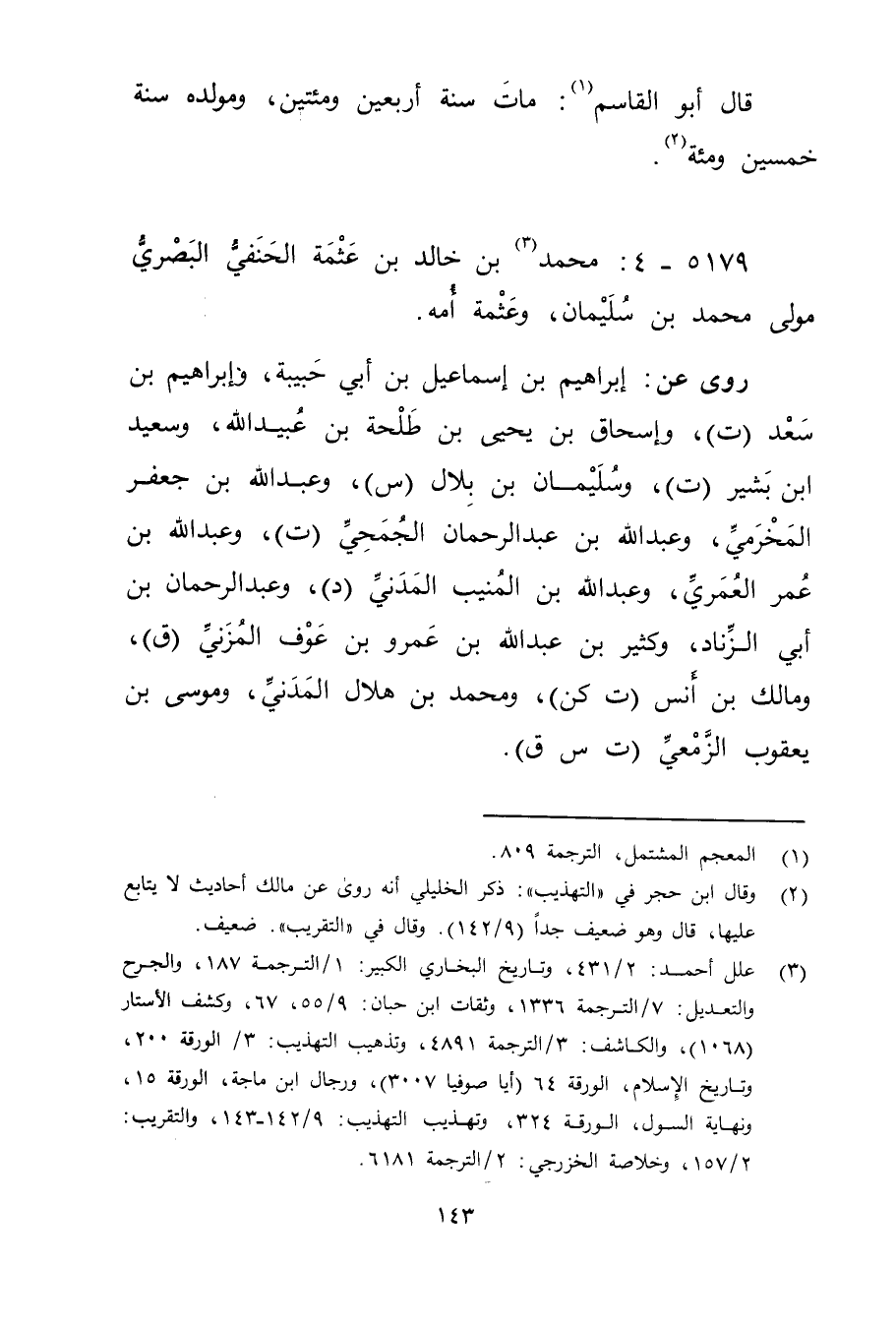 5179 - 4: مُحَمَّد بْن خالد بْن عثمة الحنفي البَصْرِيّ مولى مُحَمَّد بن سُلَيْمان (3) ، وعثمة أمه.