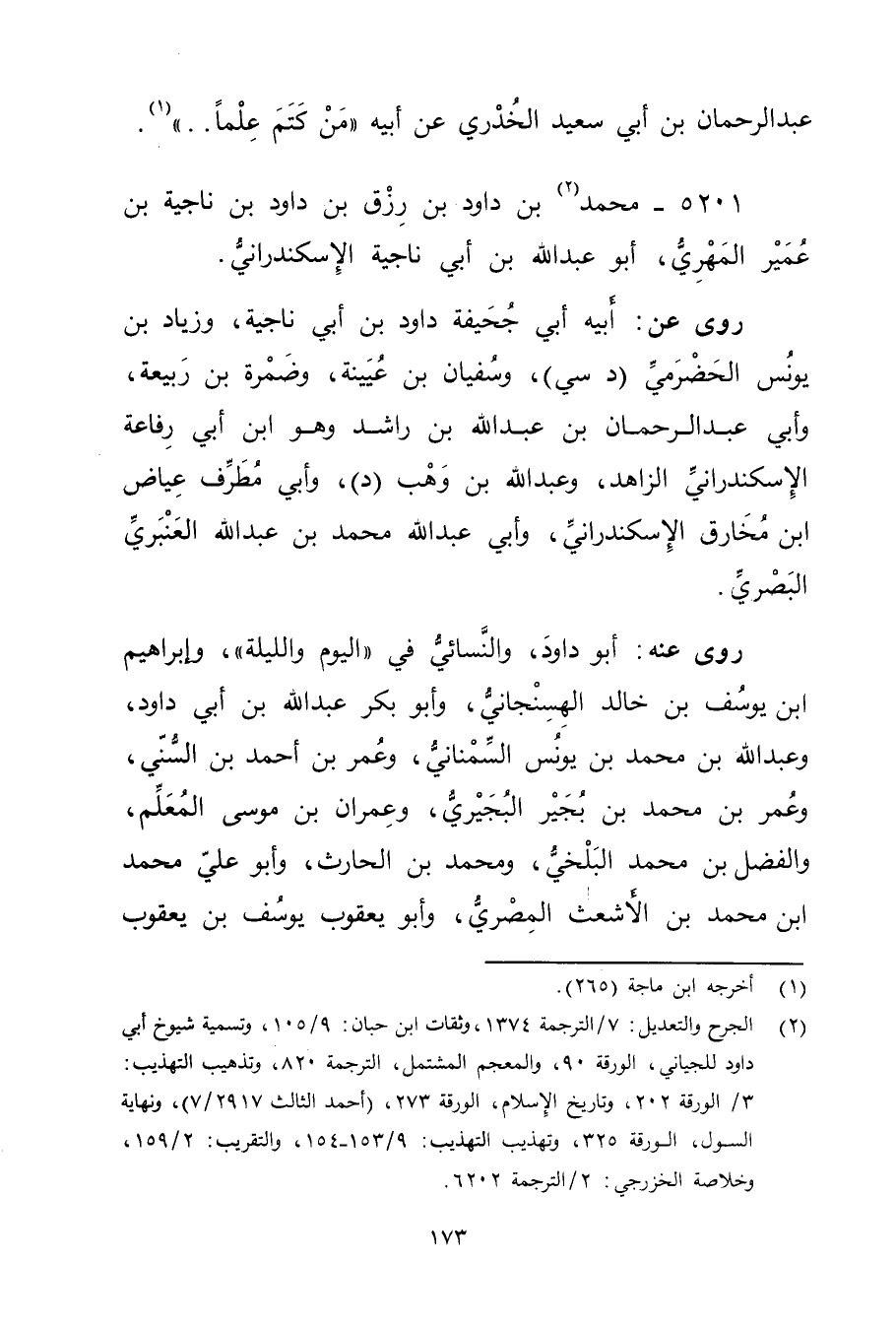 (2) الجرح والتعديل: 7 / الترجمة 1374، وثقات ابن حبان: 9 / 105، وتسمية شيوخ أبي داود للجياني، الورقة 90، والمعجم المشتمل، الترجمة 820، وتذهيب التهذيب: 3 / الورقة 202، وتاريخ الاسلام، الورقة 273، (أحمد الثالث 2917 / 7) ، ونهاية السول، الورقة 325، وتهذيب التهذيب: 9 / 153 - 154، والتقريب: 2 / 159، وخلاصة الخزرجي: 2 / الترجمة 6202.