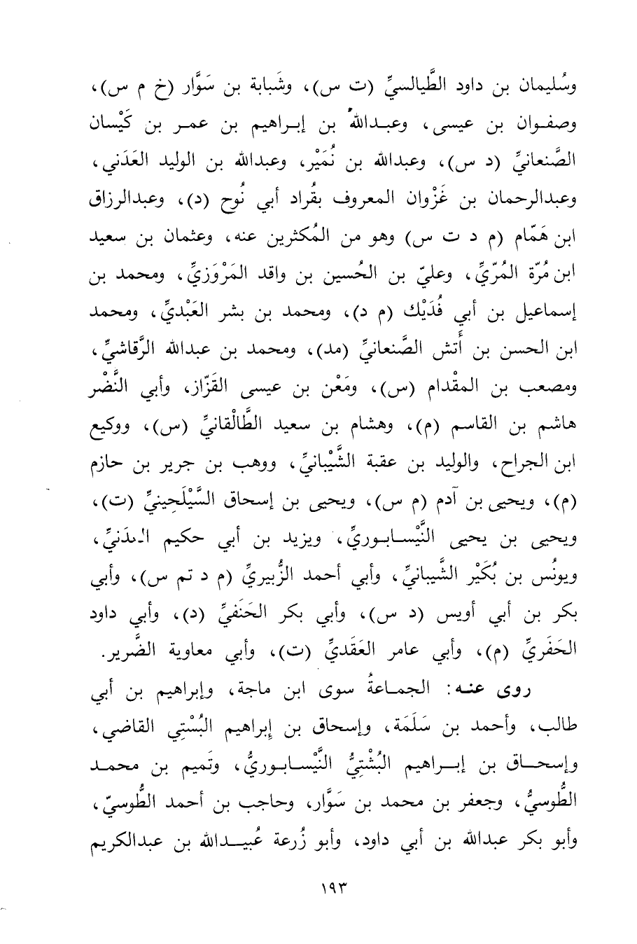 رَوَى عَنه: الجماعة سوى ابْن ماجه، وإبراهيم بْن أَبي طالب، وأَحْمَد بْن سلمة، وإسحاق بن إِبْرَاهِيم البستي القاضي، وإسحاق بن إِبْرَاهِيم البشتي النيسابوري، وتميم بن مُحَمَّد الطوسي، وجعفر بْن مُحَمَّد بْن سوار، وحاجب بن أَحْمَد الطوسي، وأبو بَكْر عَبد اللَّهِ بْن أَبي داود، وأبو زُرْعَة عُبَيد الله بْن عبد الكريم