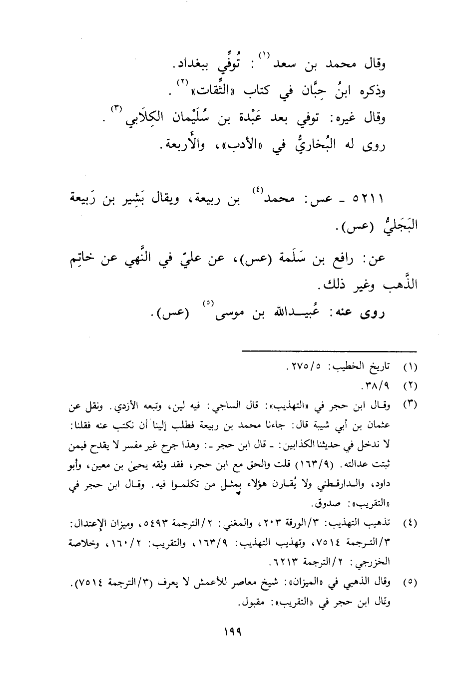 (4) تذهيب التهذيب: 3 / الورقة 203، والمغني: 2 / الترجمة 5493، وميزان الاعتدال: 3 / الترجمة 7514، وتهذيب التهذيب: 9 / 163، والتقريب: 2 / 160، وخلاصة الخزرجي: 2 / الترجمة 6213.