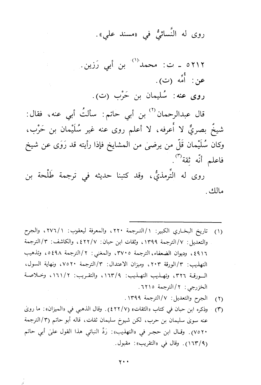 (3) وذكره ابنُ حِبَّان في كتاب "الثقات" (7 / 422) . وَقَال الذهبي في "الميزان ": ما روى عنه سوى سُلَيْمان بن حرب، لكن شيوخ سُلَيْمان ثقات، قاله أبو حاتم (3 / الترجمة 7520) . وَقَال ابن حجر في "التهذيب ": رد النباتي هذ القول على أبي حاتم (9 / 163) . وَقَال في "التقريب": مقبول.