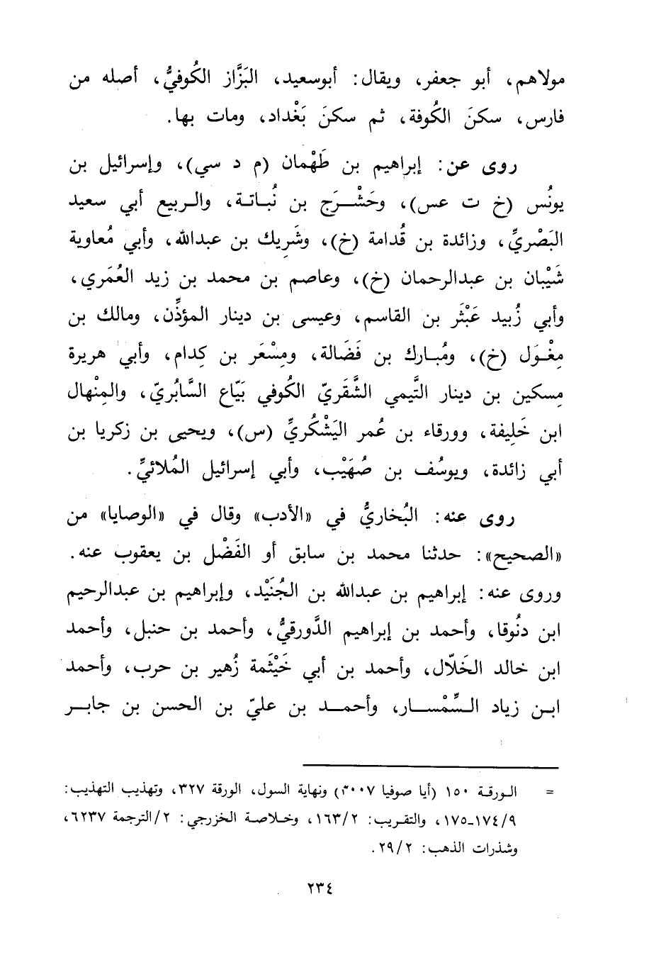 = الورقة 150 (أيا صوفيا 3007) ونهاية السول، الورقة 327، وتهذيب التهذيب: 9 / 174 - 175، والتقريب: 2 / 163، وخلاصة الخزرجي: 2 / الترجمة 6237، وشذرات الذهب: 2 / 29.