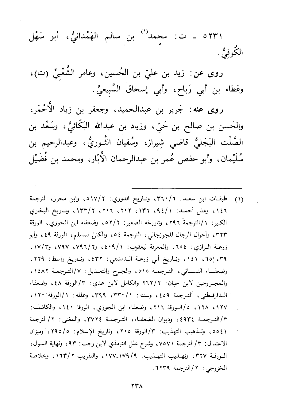 5231 - ت: مُحَمَّد بن سالم الهمداني (1) ، أبو سهل الكوفي.