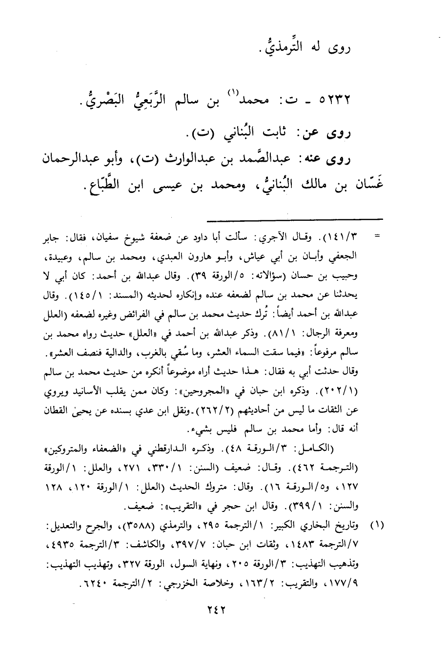 5232 - ت: مُحَمَّد بن سالم الربعي البَصْرِيّ (1) .