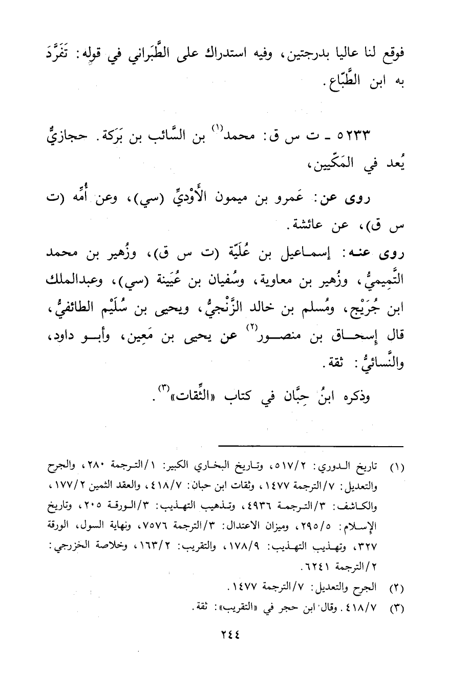 5233 - ت س ق: مُحَمَّد بن السائب بن بركة (1) . حجازي يعد في المكيين،