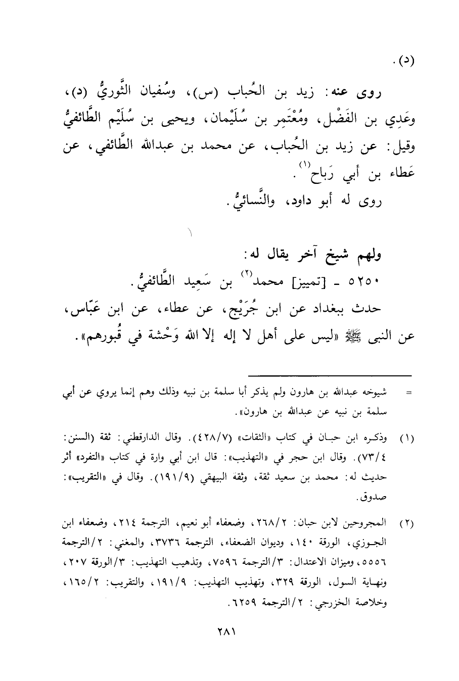 (1) وذكره ابنُ حِبَّان في كتاب "الثقات" (7 / 428) . وَقَال الدَّارَقُطنِيّ: ثقة (السنن: 4 / 73) . وَقَال ابن حجر في "التهذيب ": قال ابن أَبي وارة في كتاب "التفرد "أثر حديث له: محمد بن سَعِيد ثقة، وثقه البيهقي (9 / 191) . وَقَال في "التقريب": صدوق.