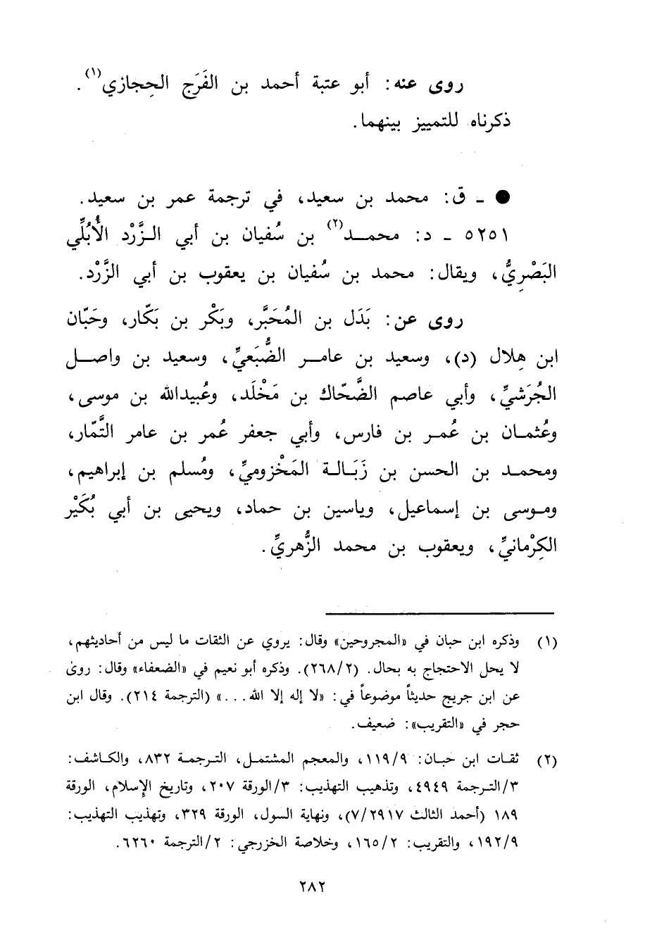 (2) ثقات ابن حبان: 9 / 119، والمعجم المشتمل، الترجمة 832، والكاشف: 3 / الترجمة 4949، وتذهيب التهذيب: 3 / الورقة 207، وتاريخ الاسلام، الورقة