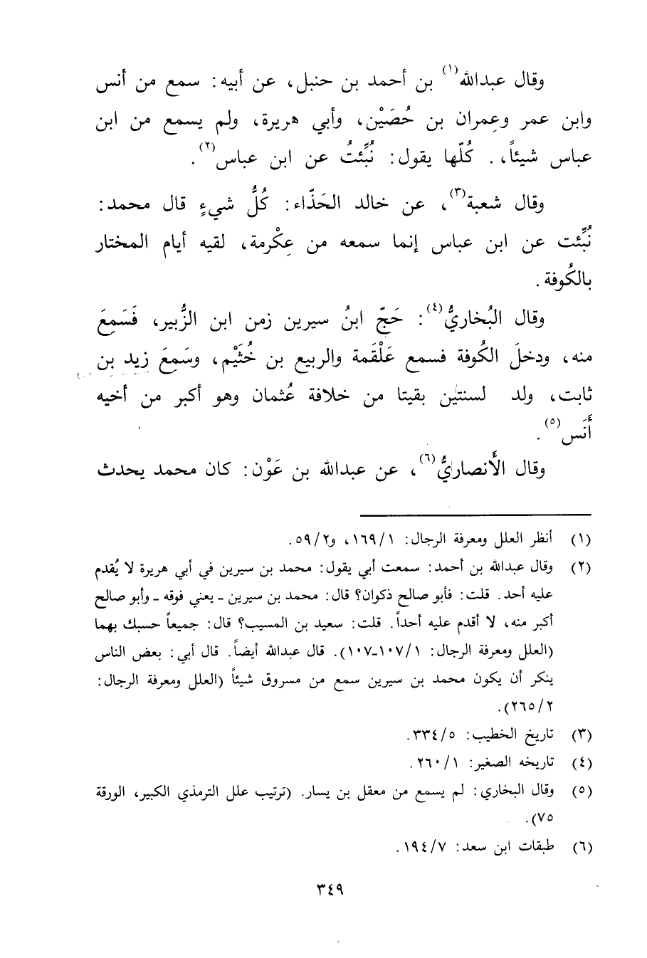 (2) وَقَال عَبد اللَّهِ بْن أَحْمَد: سمعت أبي يقول: مُحَمَّد بن سيرين في أبي هُرَيْرة لا يقدم عليه أحد. قلت: فأبو صالح ذكوان؟ قال: محمد بن سيرين، يعني فوقه - وأبو صالح أكبر منه، لا أقدم عليه أحدا. قلت: سَعِيد بن المُسَيَّب؟ قال: جميعا حسبك بهما (العلل ومعرفة الرجال: 1 / 107 - 107) . قال عَبد الله أيضا. قال أبي: بعض الناس ينكر أَنْ يَكُونَ مُحَمَّدَ بْنَ سِيرِينَ سمع من مسروق شيئا (العلل ومعرفة الرجال: 2 / 265) .