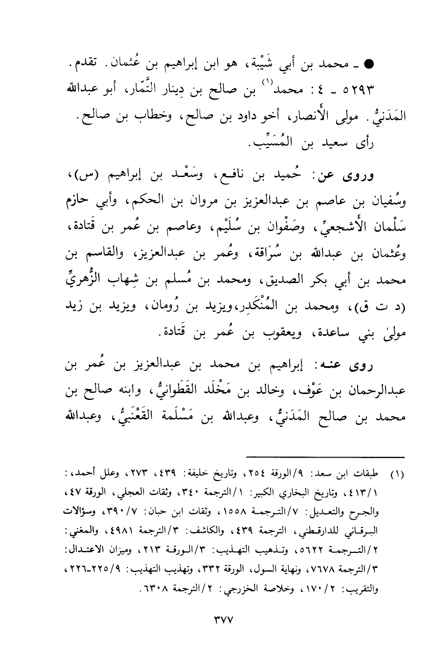 (1) طبقات ابن سعد: 9 / الورقة 254، وتاريخ خليفة: 439، 273، وعلل أحمد،: 1 / 413، وتاريخ البخاري الكبير: 1 / الترجمة 340، وثقات العجلي، الورقة 47، والجرح والتعديل: 7 / الترجمة 1558، وثقات ابن حبان: 7 / 390، وسؤالات البرقاني للدارقطني، الترجمة 439، والكاشف: 3 / الترجمة 4981، والمغني: 2 / الترجمة 5622، وتذهيب التهذيب: 3 / الورقة 213، وميزان الاعتدال: 3 / الترجمة 7678، ونهاية السول، الورقة 332، وتهذيب التهذيب: 9 / 225 - 226، والتقريب: 2 / 170، وخلاصة الخزرجي: 2 / الترجمة 6308.
