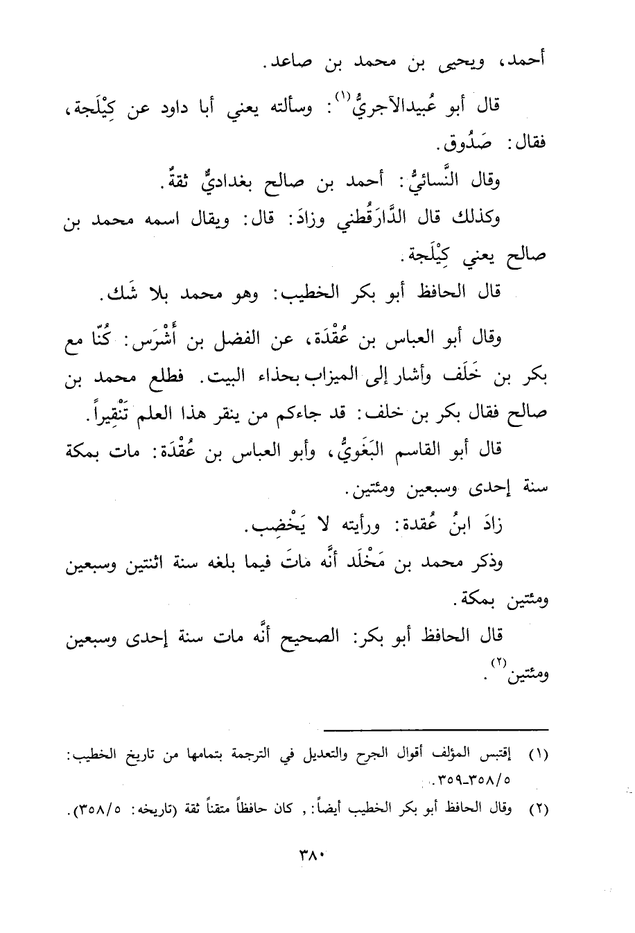 (1) إقتبس المؤلف أقوال الجرح والتعديل في الترجمة بتمامها من تاريخ الخطيب: 5 / 358 - 359.