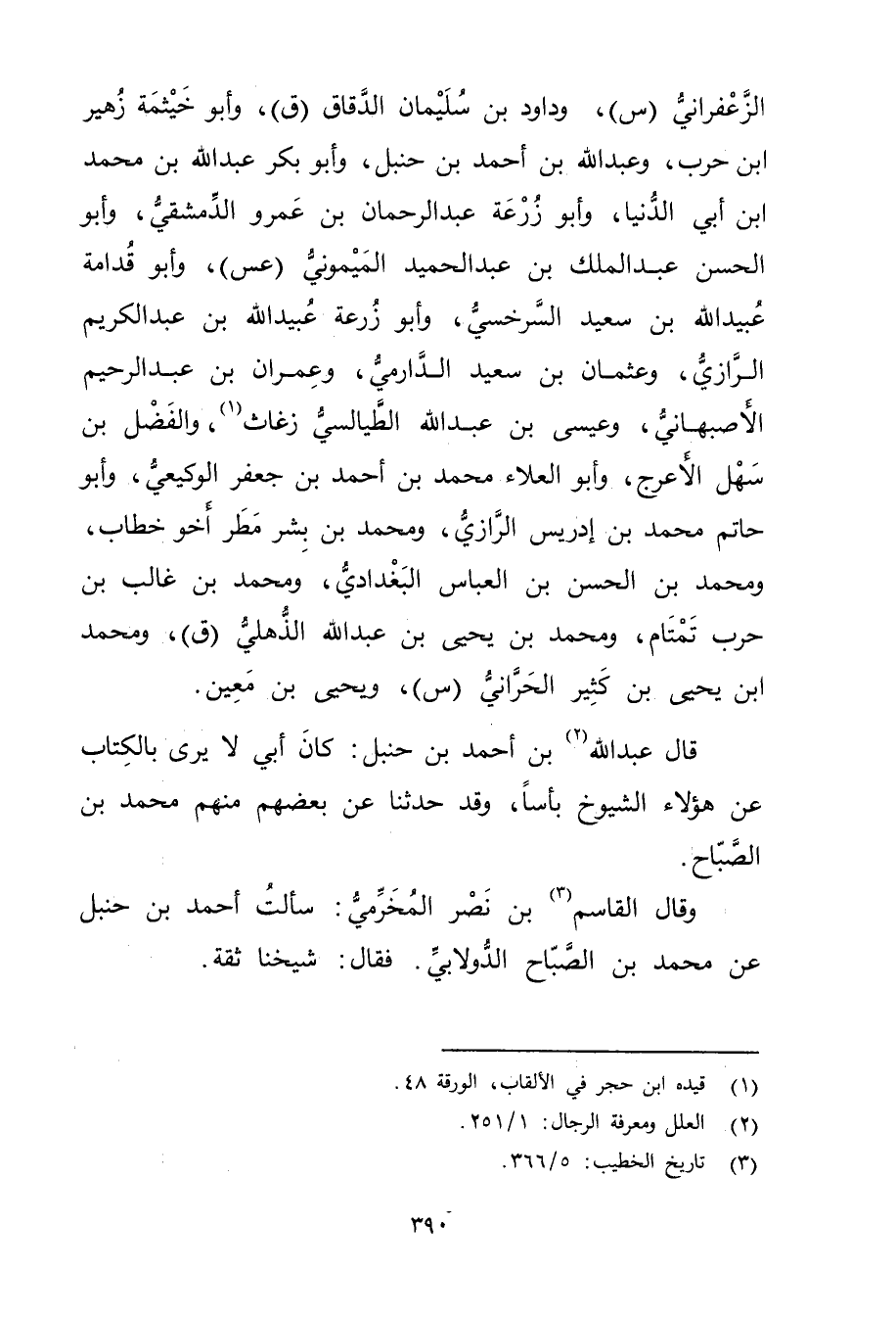 قال عَبد اللَّهِ (2) بْن أَحْمَد بْن حنبل: كَانَ أَبِي لا يرى بالكتاب عَنْ هؤلاء الشيوخ بأسا، وقد حَدَّثَنَا عن بعضهم منهم مُحَمَّد بْن الصباح.