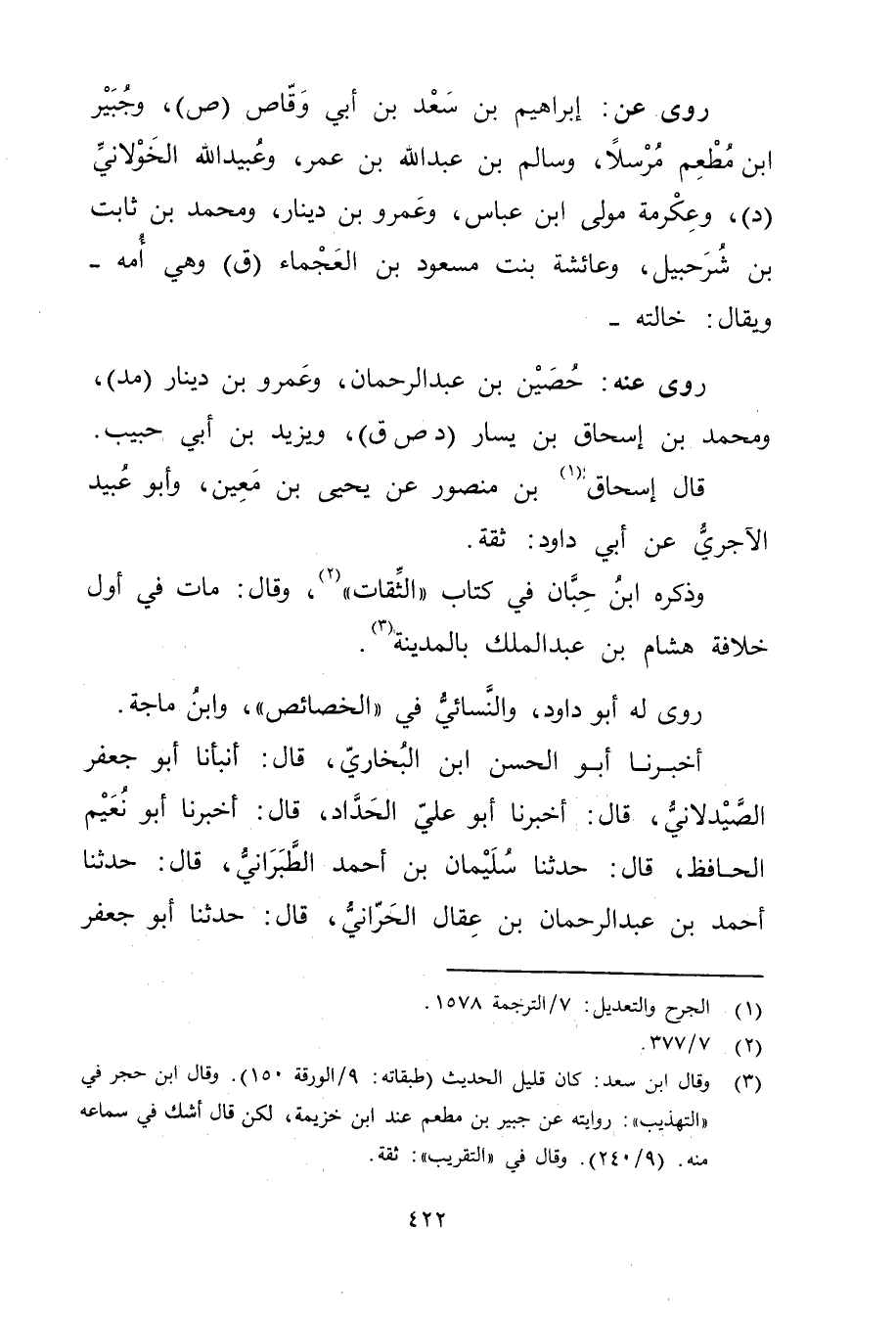 (3) وَقَال ابن سعد: كان قليل الحديث (طبقاته: 9 / الورقة 150) . وَقَال ابن حجر في "التهذيب ": روايته عن جبير بن مطعم عند ابن خزيمة، لكن قال أشك في سماعه منه.