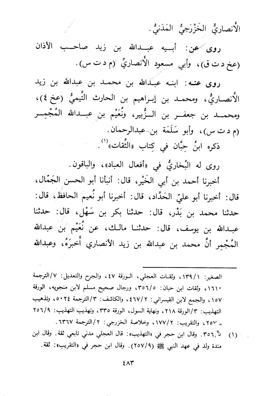 الأَنْصارِيّ الخزرجي المدني.