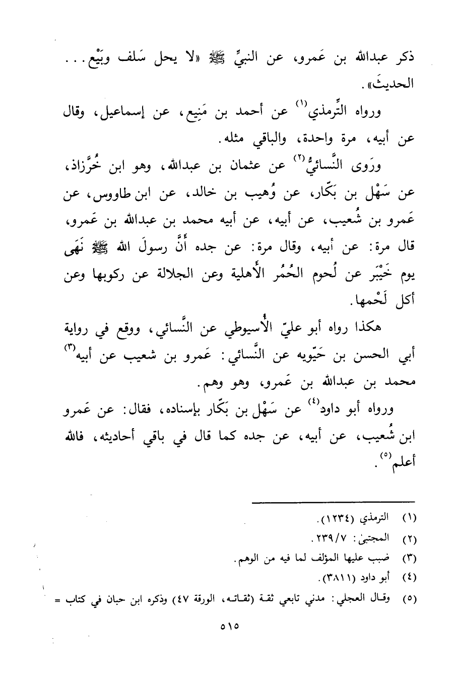 هكذا رواه أَبُو علي الأسيوطي عَنِ النَّسَائي، ووقع في رواية أبي الْحَسَن بْن حيويه عن النَّسَائي: عَمْرو بْن شعيب عَن أبيه (3) مُحَمَّد بن عَبد اللَّهِ بن عَمْرو، وهو وهم.