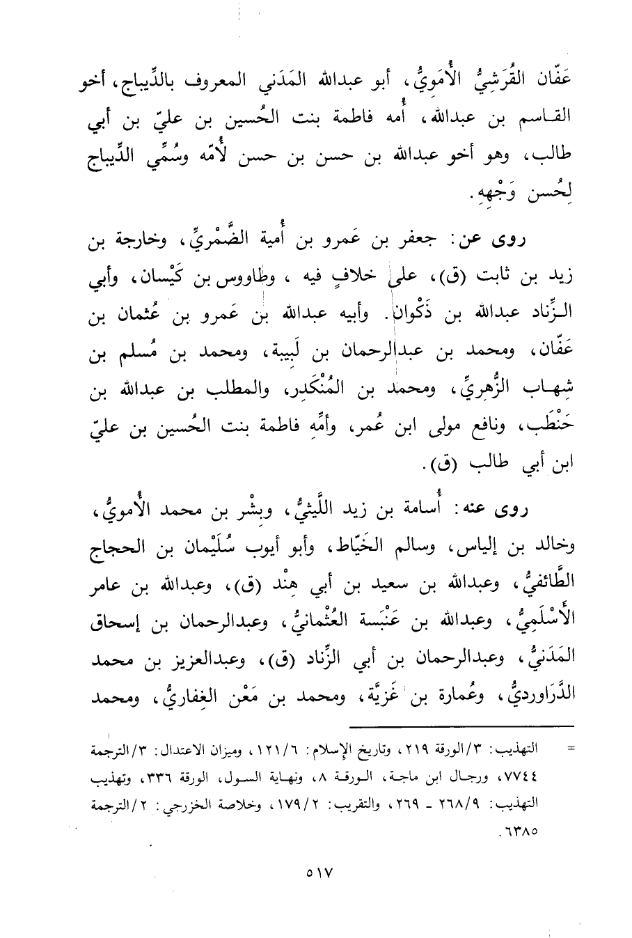 = التهذيب: 3 / الورقة 219، وتاريخ الاسلام: 6 / 121، وميزان الاعتدال: 3 / الترجمة 7744، ورجال ابن ماجة، الورقة 8، ونهاية السول، الورقة 336، وتهذيب التهذيب: 9 / 268 - 269، والتقريب: 2 / 179، وخلاصة الخزرجي: 2 / الترجمة 6385.