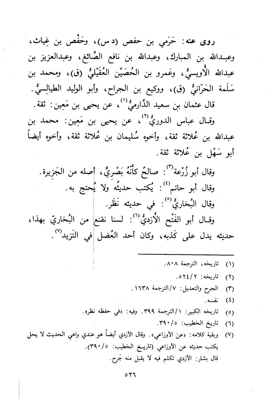 (7) وبقية كلامه: "عن الأَوزاعِيّ ". وَقَال الأزدي أيضا هو عندي واهي الحديث لا يحل يكتب حديثه عن الأَوزاعِيّ (تاريخ الخطيب: 5 / 390) . قال بشار: الأزدي تكلم فيه لا يقبل منه جرح.