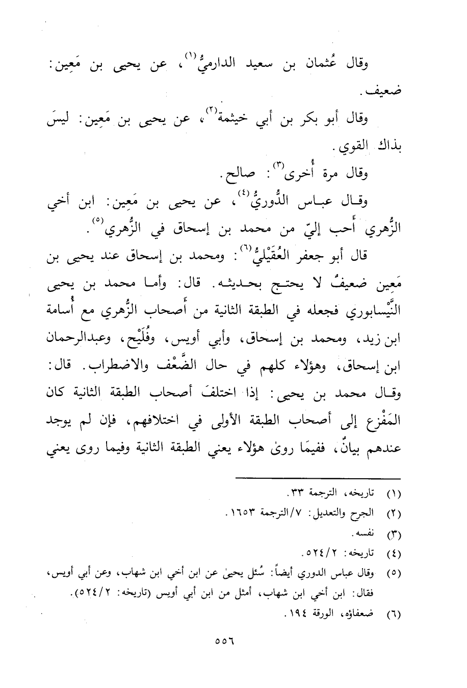 (5) وَقَال عَباس الدُّورِيُّ أيضا: سئل يحيى عن ابن أخي ابن شهاب، وعَن أبي أويس، فقال: ابن أخي ابن شهاب، أمثل من ابن أَبي أويس (تاريخه: 2 / 524) .