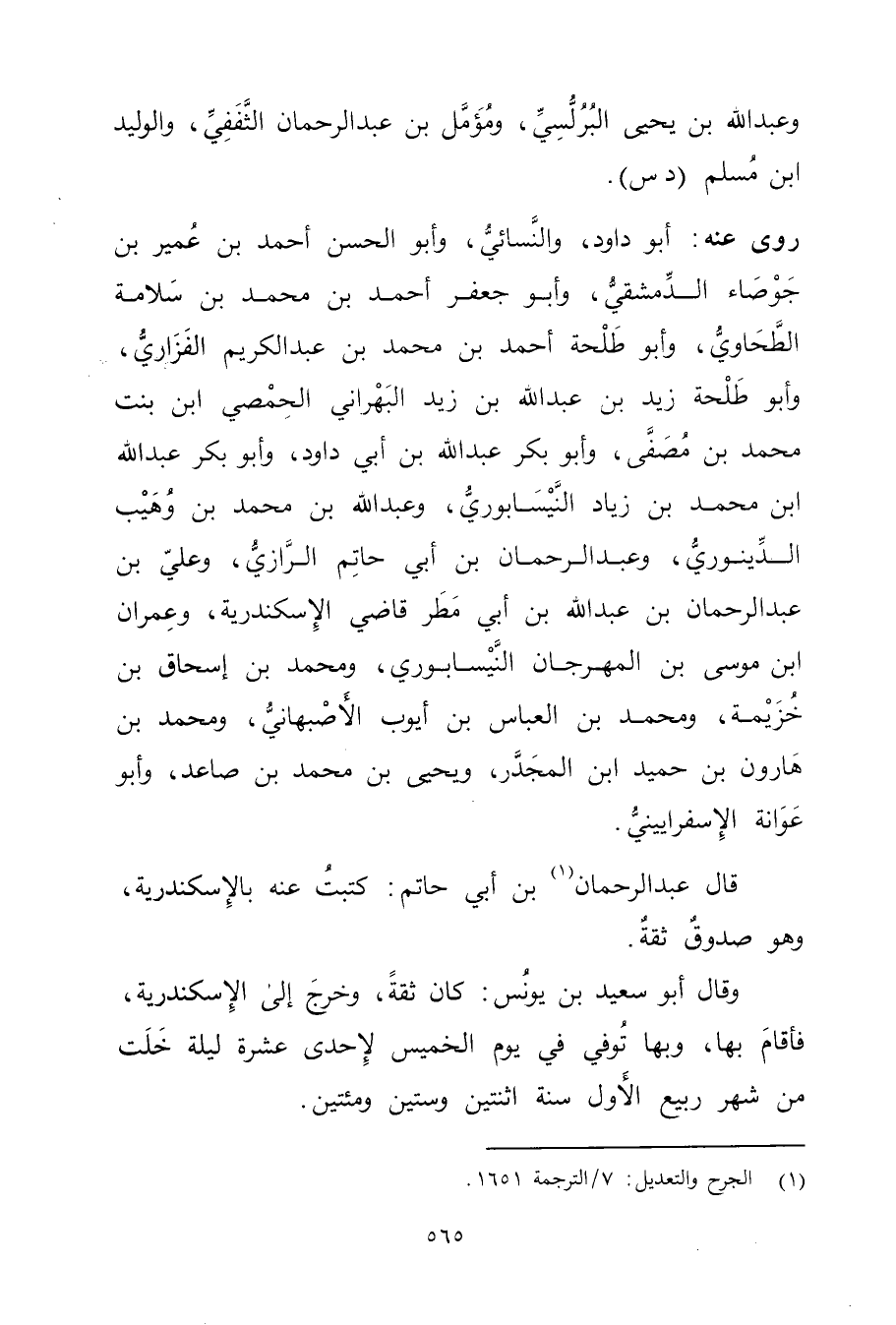 (1) الجرح والتعديل: 7 / الترجمة 1651.