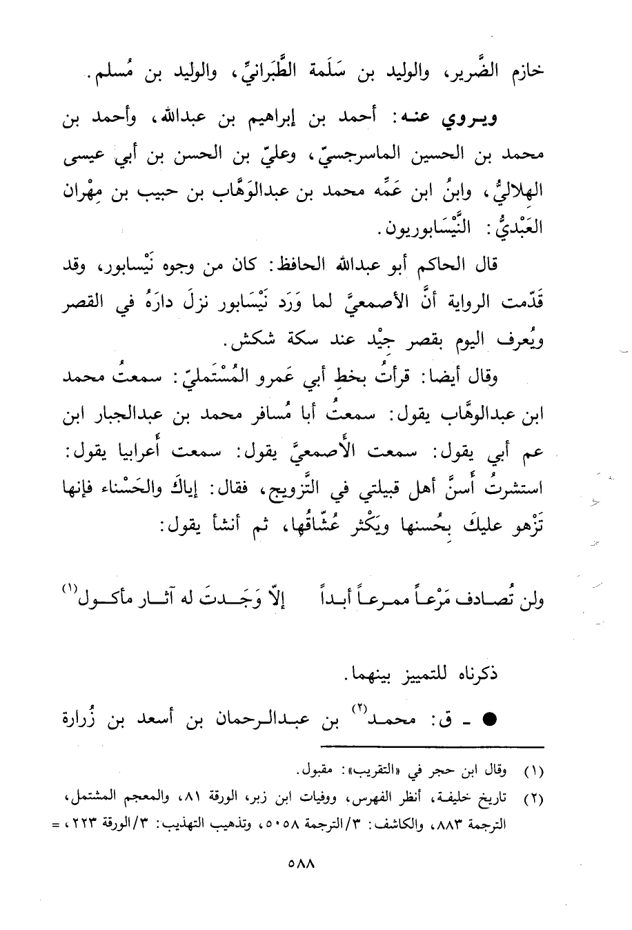(2) تاريخ خليفة، انظر الفهرس، ووفيات ابن زبر، الورقة 81، والمعجم المشتمل، الترجمة 883، والكاشف: 3 / الترجمة 5058، وتذهيب التهذيب: 3 / الورقة 223، =