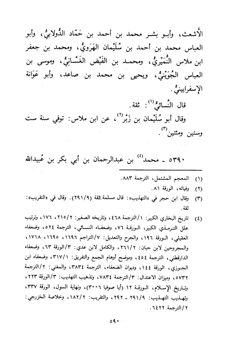 5732، وميزان الاعتدال: 3 / الترجمة 7834، وتذهيب التهذيب: 3 / الورقة 223، وتاريخ الاسلام، الورقة 12 (أيا صوفيا 3006) ، ونهاية السول، الورقة 337، وتهذيب التهذيب: 9 / 291 - 292، والتقريب: 2 / 182، وخلاصة الخزرجي: 2 / الترجمة 6422.