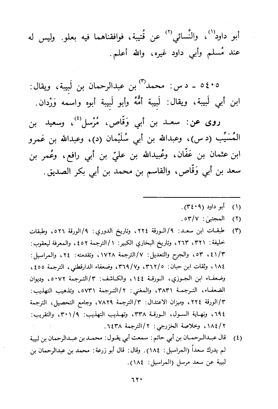 (4) قال عبد الرحمن بن أَبي حاتم: سمعت أبي يقول: محمد بن عبد الرحمن بن لبيبة لم يدرك سعدا (المراسيل: 184) . وَقَال: قال أبو زُرْعَة: محمد بن عبد الرحمن بن لبيبة عن سعد مرسل (المراسيل: 184) .