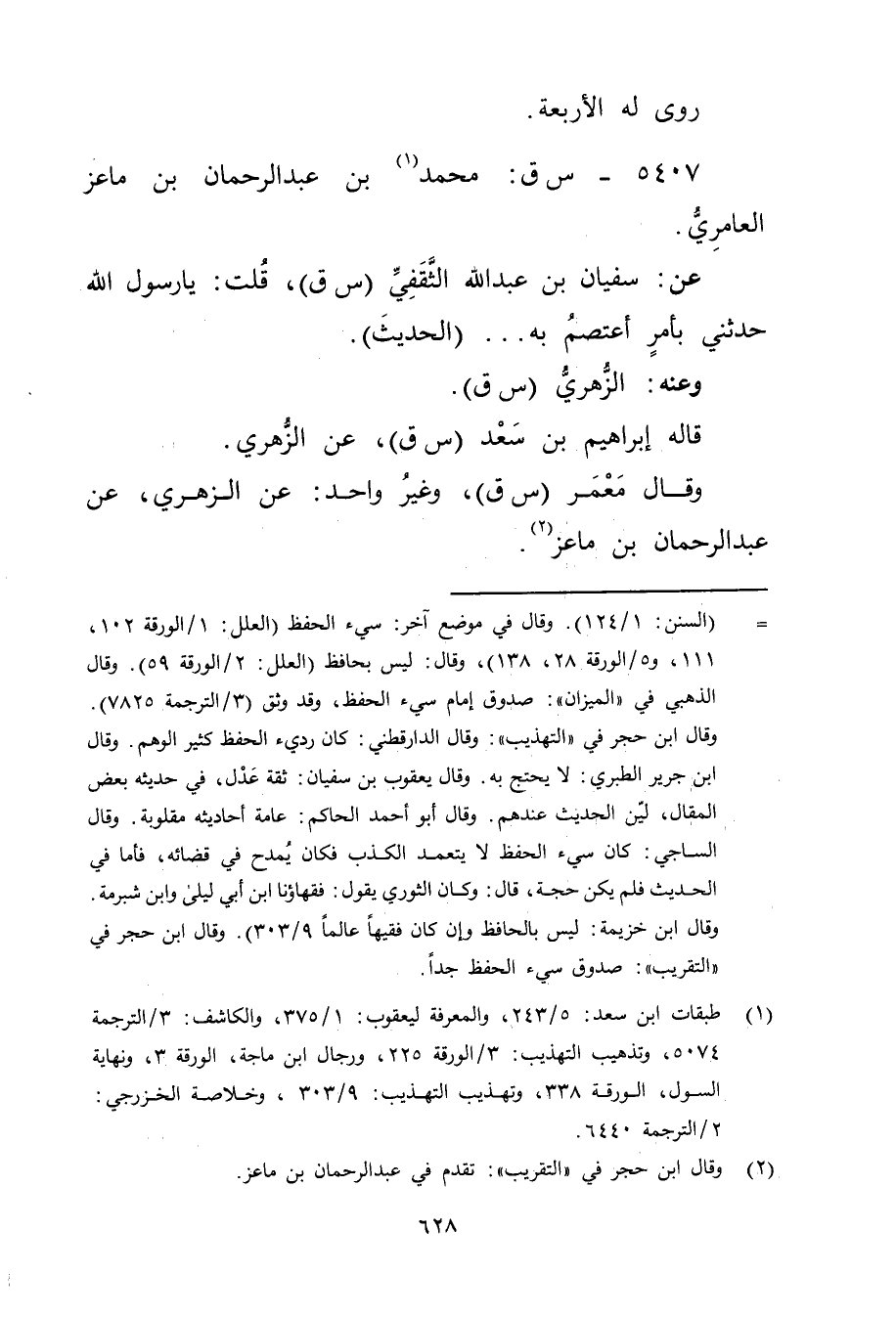 5407 - س ق: مُحَمَّد بْن عَبْد الرَّحْمَنِ بْن ماعز العامري (1) .