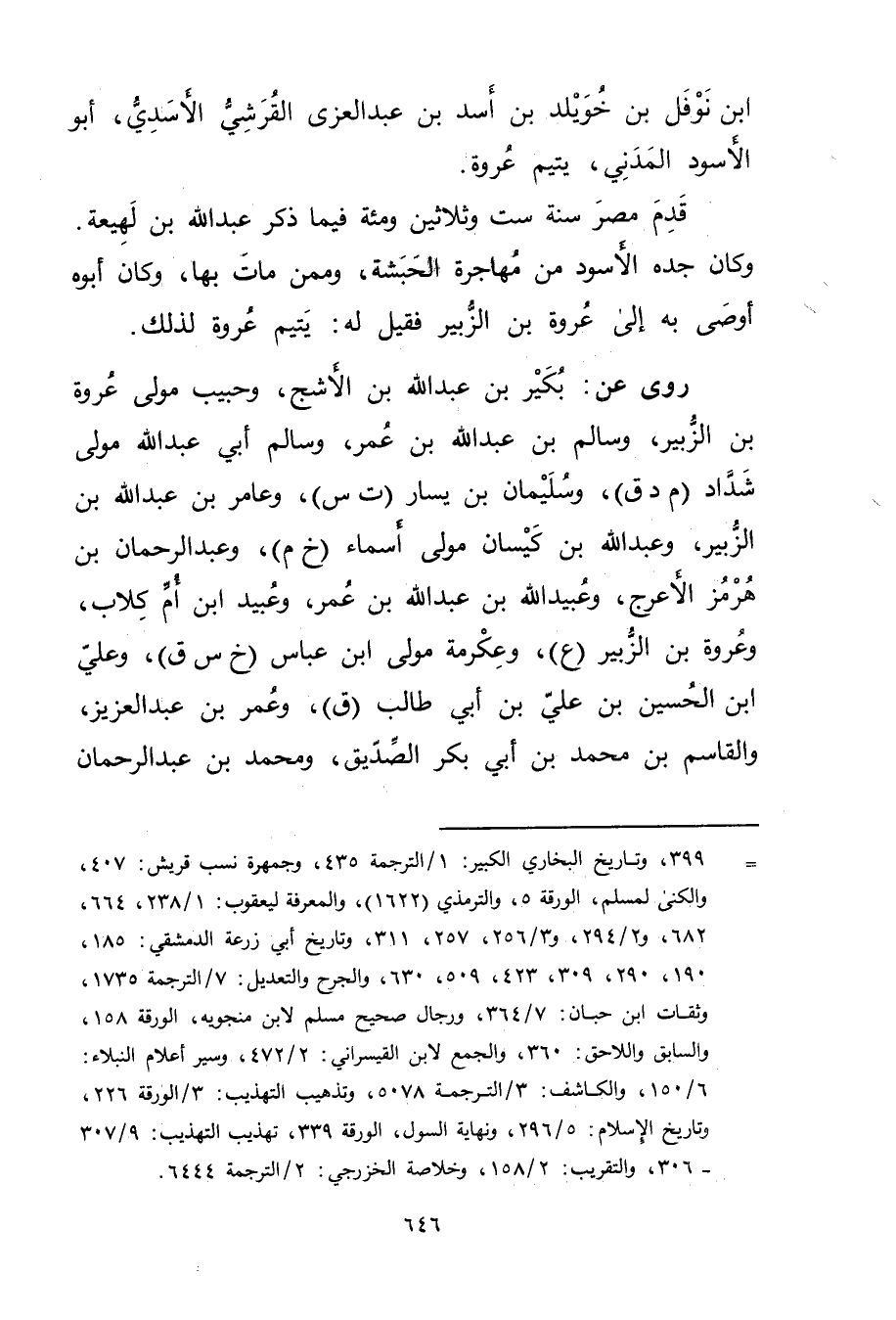 ابن نوفل بن خويلد بن أسد بن عبد العزى القرشي الأسدي، أَبُو الأسود المدني يتيم عروة.