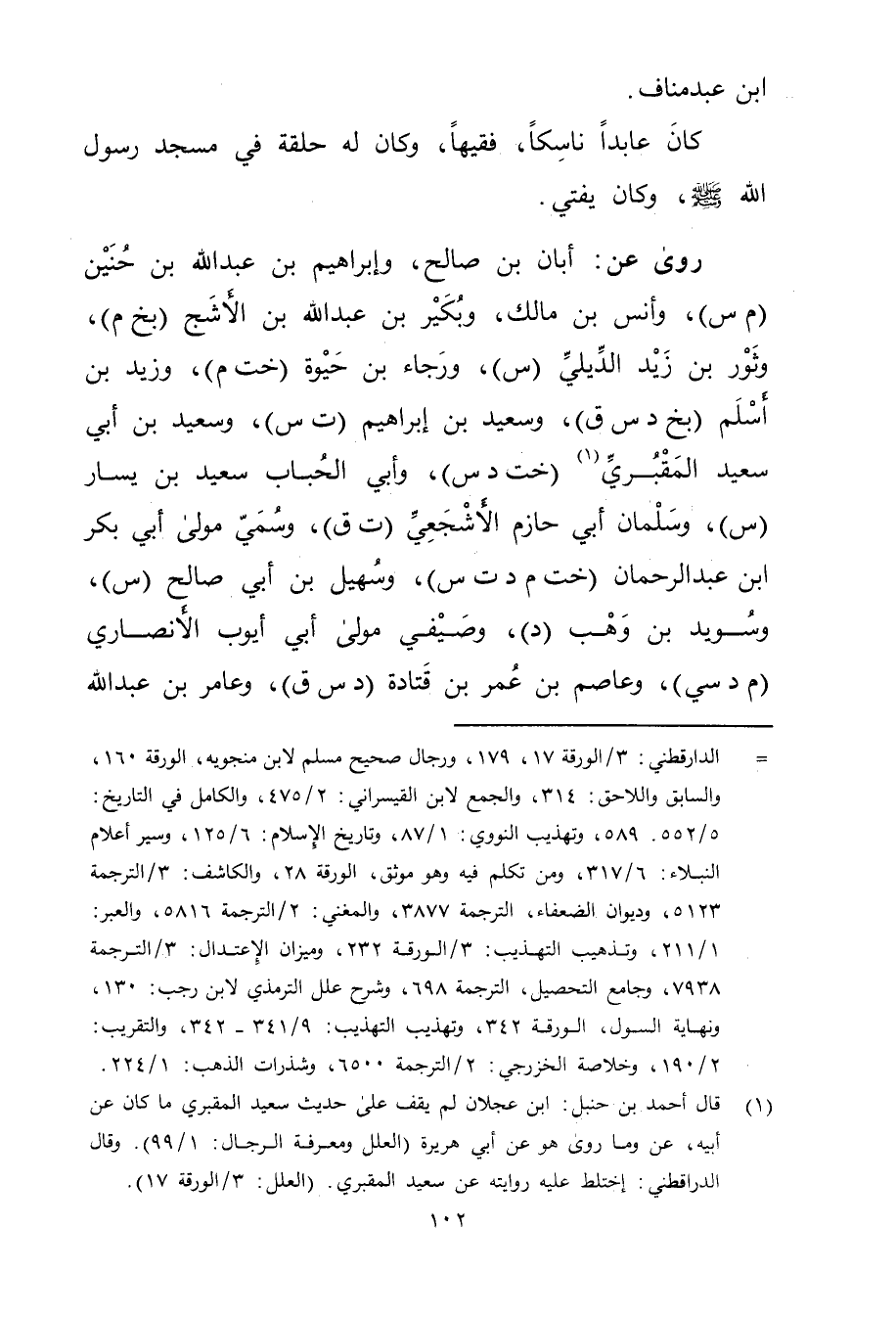 = الدارقطني: 3 / الورقة 17، 179، ورجال صحيح مسلم لابن منجويه، الورقة 160، والسابق واللاحق: 314، والجمع لابن القيسراني: 2 / 475، والكامل في التاريخ: 5 / 552. 589، وتهذيب النووي: 1 / 87، وتاريخ الاسلام: 6 / 125، وسير أعلام النبلاء: 6 / 317، ومن تكلم فيه وهو موثق، الورقة 28، والكاشف: 3 / الترجمة 5123، وديوان الضعفاء، الترجمة 3877، والمغني: 2 / الترجمة 5816، والعبر: 1 / 211، وتذهيب التهذيب: 3 / الورقة 232، وميزان الاعتدال: 3 / الترجمة 7938، وجامع التحصيل، الترجمة 698، وشرح علل التِّرْمِذِيّ لابن رجب 130، ونهاية السول، الورقة 342، وتهذيب التهذيب: 9 / 341 - 342، والتقريب: 2 / 190، وخلاصة الخزرجي: 2 / الترجمة 6500، وشذرات الذهب: 1 / 224.