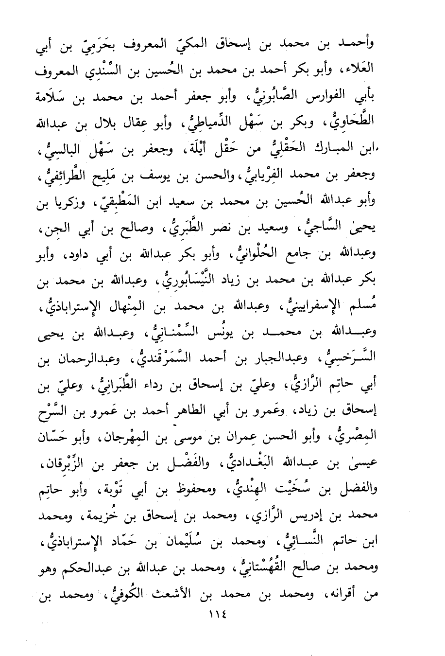وأَحْمَد بْن مُحَمَّد بْن إسحاق المكي المعروف بحرمي بن أَبي العلاء، وأَبُو بكر أَحْمَد بن مُحَمَّد بن الحسين بن السندي المعروف بأبي الفوارس الصابوني، وأَبُو جَعْفَر أَحْمَد بْن مُحَمَّد بْن سلامة الطحاوي، وبكر بن سهل الدمياطي، وأَبُو عقال بلال بن عَبد اللَّهِ بن المبارك الحقلي من حقل أيلة، وجعفر بن سهل البالسي، وجعفر بن مُحَمَّد الفريابي، والحسن بن يوسف بن مليح الطرائفي، وأَبُو عَبد اللَّهِ الحسين بن مُحَمَّد بن سَعِيد ابن المطبقي، وزكريا بن يحيى الساجي، وسَعِيد بن نصر الطبري، وصالح بن أَبي الجن، وعَبد الله بن جامع الحلواني، وأَبُو بكر عَبد اللَّهِ بْن أَبي داود، وأَبُو بَكْر عَبد اللَّهِ بْن مُحَمَّد بْن زياد النَّيْسَابُورِيّ، وعَبد الله بْن مُحَمَّد بْن مسلم الإسفراييني، وعَبد اللَّهِ بْن مُحَمَّد بن المنهال الإستراباذي، وعَبد الله بْن مُحَمَّدِ بْنِ يونس السمناني، وعَبد الله بن يحيى السرخسي، وعبد الجبار بْن أحمد السمرقندي، وعبد الرحمن بْن أَبي حَاتِم الرازي، وعلى بْن إسحاق بْن رداء الطبراني، وعلي بن إسحاق بن زياد، وعَمْرو بن أَبي الطاهر أَحْمَد بْن عَمْرو بْن السرح المِصْرِي، وأَبُو الْحَسَنِ عِمْران بن مُوسَى بن المهرجان، وأَبُو حسان عيسى بن عَبد اللَّهِ البغدادي، والفضل بن جعفر بن الزبرقان، والفضل بن سخيت الهندي، ومحفوظ بن أَبي توبة، وأَبُو حَاتِم مُحَمَّد بْن إدريس الرازي، ومحمد بْن إسحاق بْن خزيمة، ومحمد ابن حاتم النَّسَائي، ومحمد بن سُلَيْمان بن حماد الإستراباذي، ومحمد بن صالح القهستاني، ومحمد بن عَبد اللَّهِ بن عبد الحكم وهو من أقرانه، ومحمد بن مُحَمَّد بْن الأشعث الكوفي، ومحمد بْن